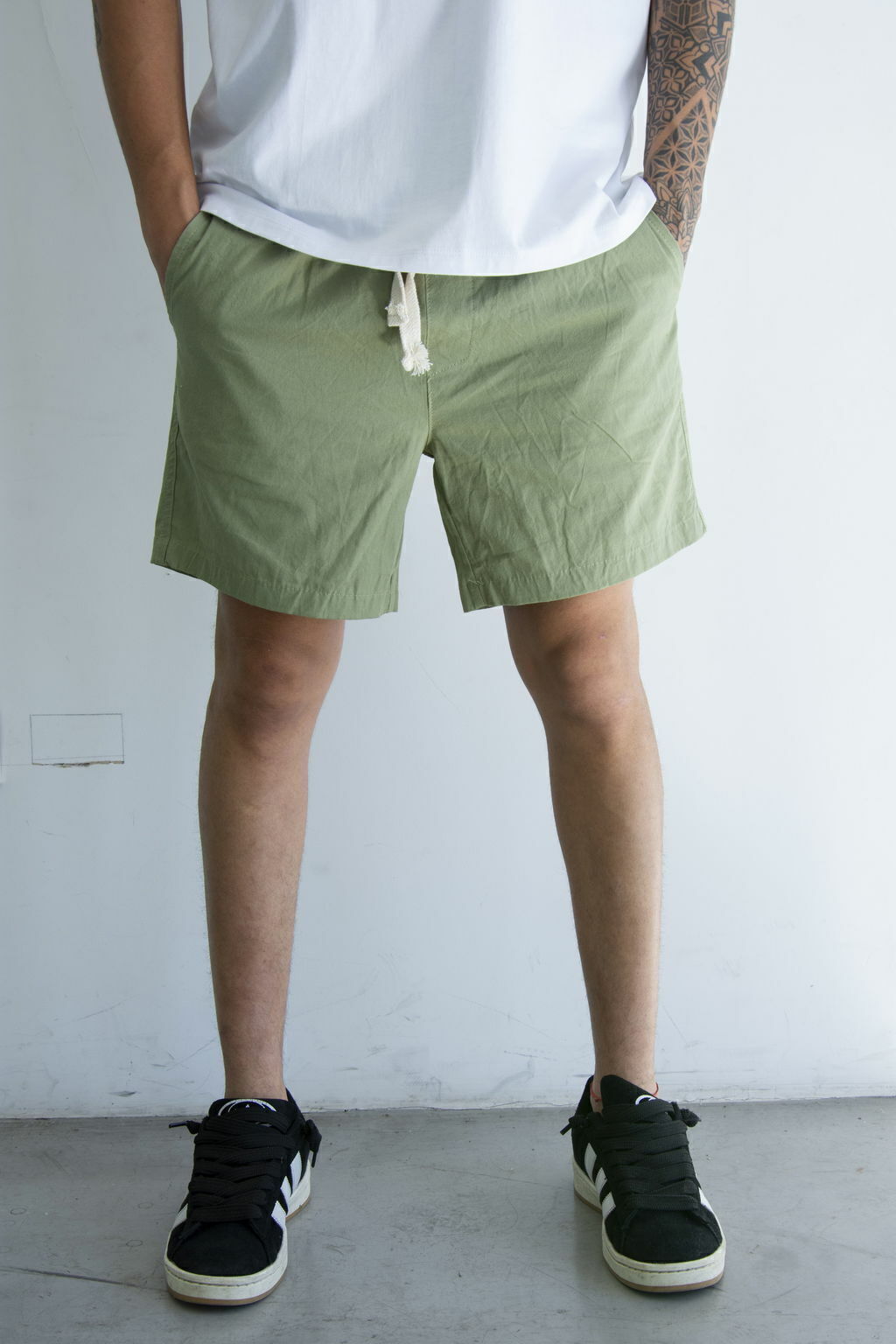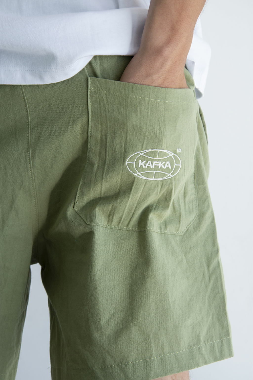 Bermuda simil lino color verde, con logo KAFKA personalizado.